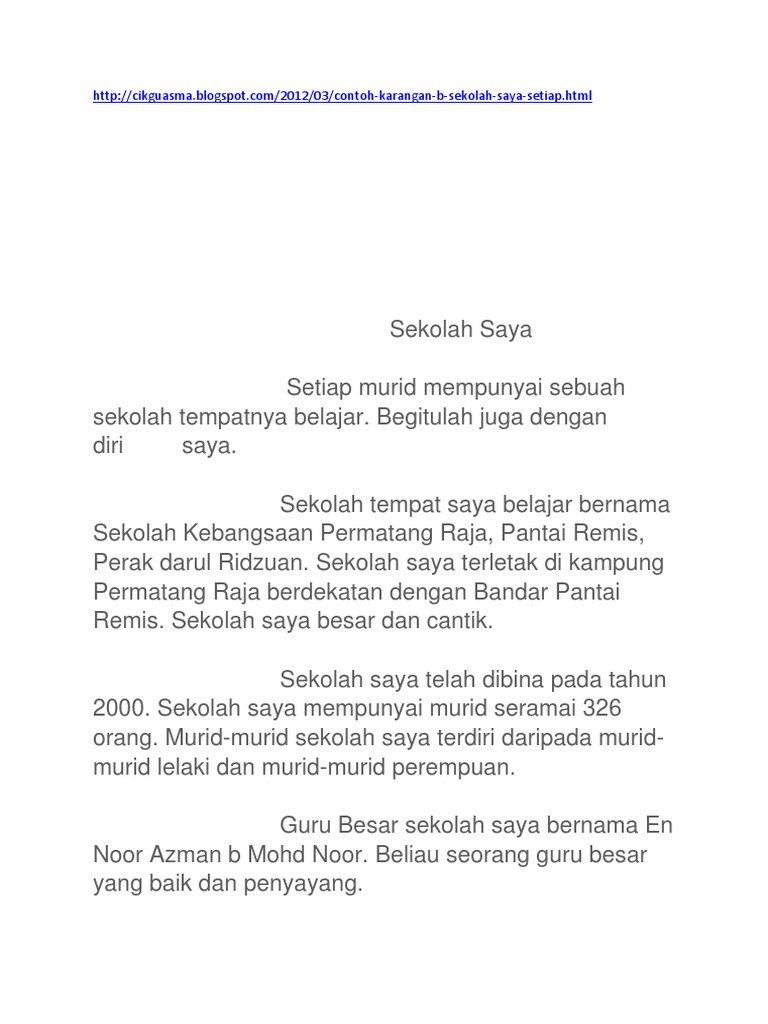 Sekolah saya mempunyai sebuah kantin yang besar. Dalam contoh karangan pertama ini kita meneroka pelajaran mengenai kematian. Beliau sudah berumah tangga dan kini mempunyai empat cahaya mata.